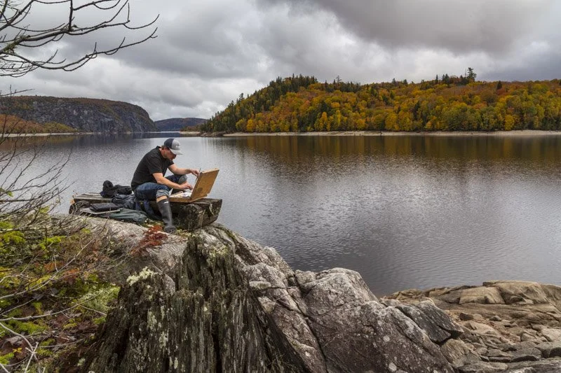 Jon Houghton grew up in Thornbury, Ontario. After graduating from Lakefield College School in 2003, he studied Fine Arts at Mount Allison University, majoring in Painting and Drawing. After three years at Mount Allison, Jon moved to Greece where he studied Classical painting at the Aegean Center for Fine Arts. He returned to Canada in 2008 to round out his education with a year at Ontario College of Art and Design. Jon has since returned to the Southern Georgian Bay area to open a studio/gallery in downtown Collingwood. Since 2016 Jon has been a member of the painting group Untamed Things. Originally formed as a tribute to Tom Thomson on the anniversary of his death, it has grown an evolved into a group of friends with a shared love of exploration and plein air painting, with yearly trips and subsequent shows. www.untamedthings.comJon’s paintings can be recognized by the use of bold colours and graphic style. He works with oil on canvas and his subject matter is largely made up of scenes from Georgian Bay, The Niagara Escarpment, and Toronto. Photo by Gary McGuffin